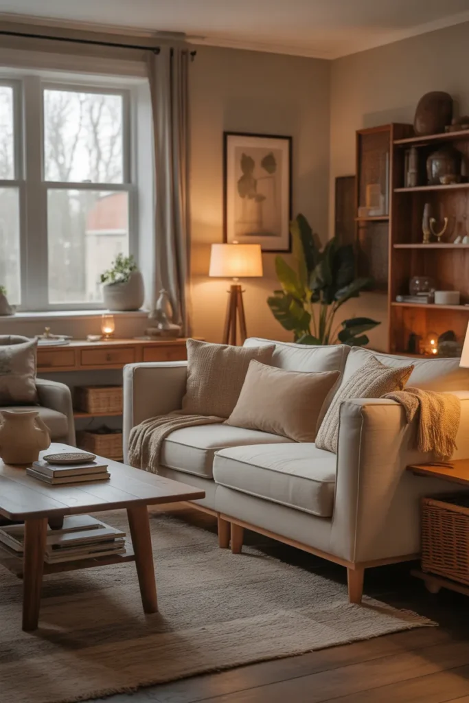 This approach ensures your living room remains practical while still reflecting a cozy, lived-in aesthetic. It’s a perfect way to achieve balance and uniqueness in your design.